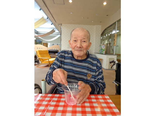 連日の猛暑が続く中、東郷苑では誕生日会としてみなさんでかき氷をいただきました!