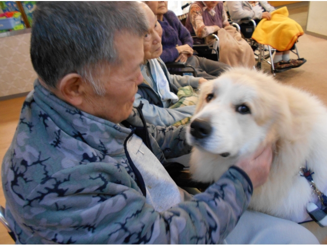 1/18(月)にNPO法人しっぽいっぽの会から支援犬がきてくれました!年2回あるアニマルセラピーですが、毎回人懐っこい支援犬に利用者さんも癒されています。小さいチワワは利用者さん皆さんに抱っこしてもらいました!みなさんとてもよい笑顔で、自宅で飼っていた犬を思い出す方もたくさんみえました。70キロの犬には怖がってしまうかたも、、!アニマルセラピーをすると、本当に動物の力はすごいと感じます。次は来年度の開催になりますが、待ち遠しいです😊