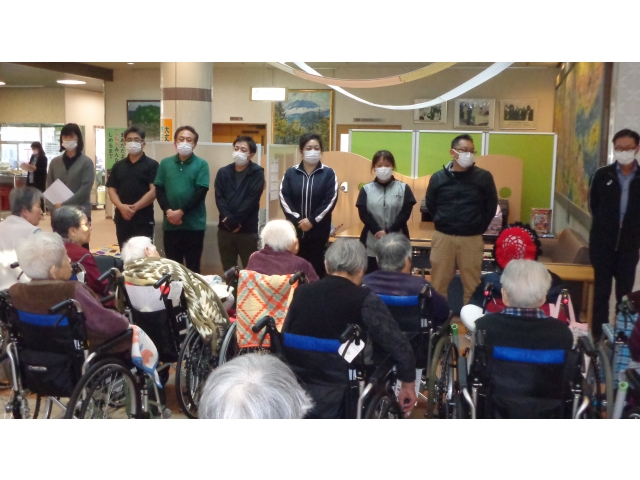 本日、1F及び2F利用者様に他施設からの転入及び新規採用職員の挨拶会を開催しました! 新たな施設での勤務は慣れるのにも大変かと思いますが、転属のなかった職員と協力して利用者の皆様の安心でき、楽しい日常を送っていただけるように頑張っていきましょう!(^^)!