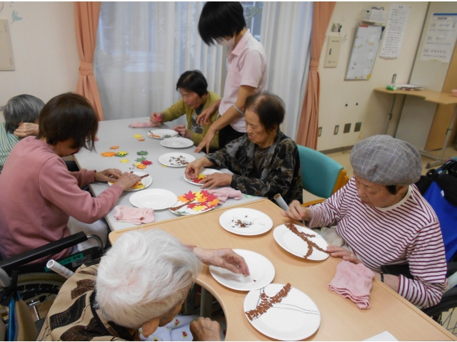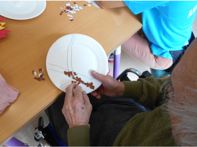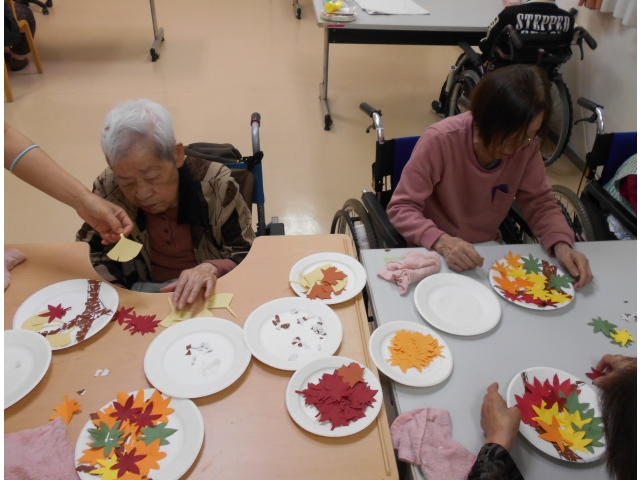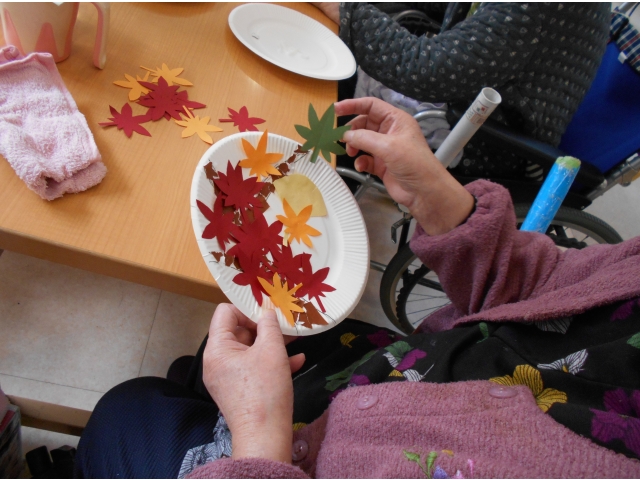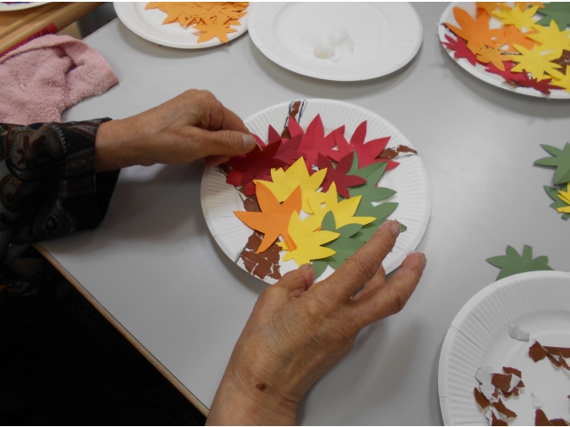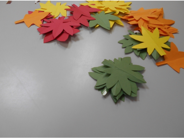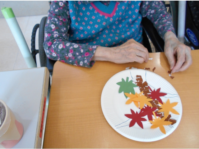 1階フロアでは、 ちぎり絵 で 紅葉 を作っていました。