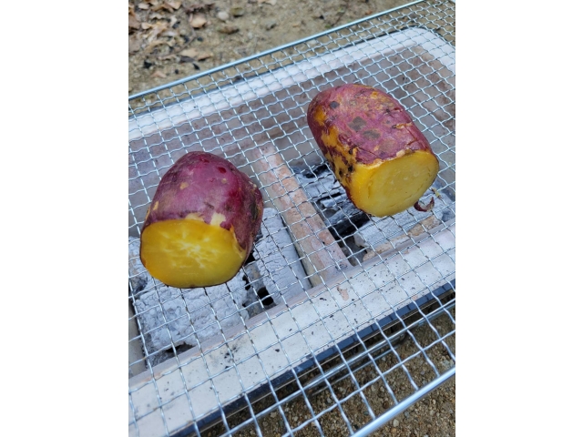 デイサービスでは、庭で七輪を使って焼き芋を焼いていました。 美味しそう!