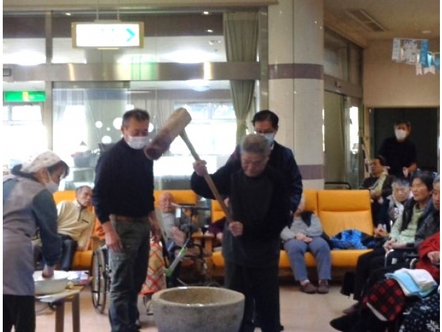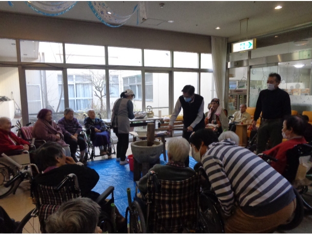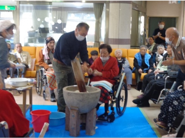 懐かしく思う利用者様も多く、杵を持って力強く餅つきを体験されました。