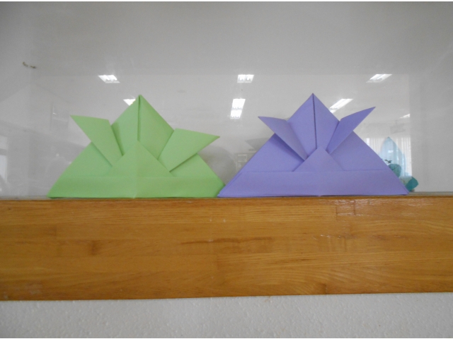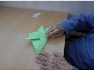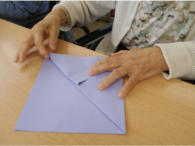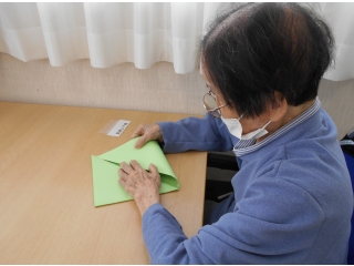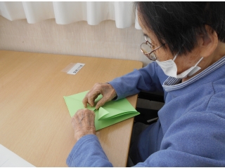 5月5日は子供の日入居者の皆様と折り紙カブトを制作しました。