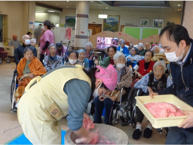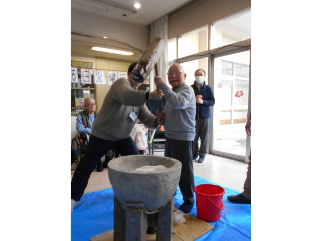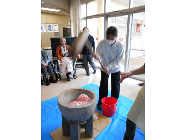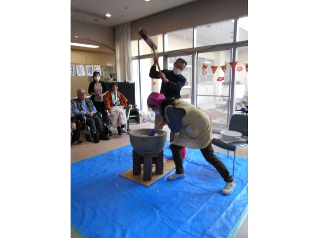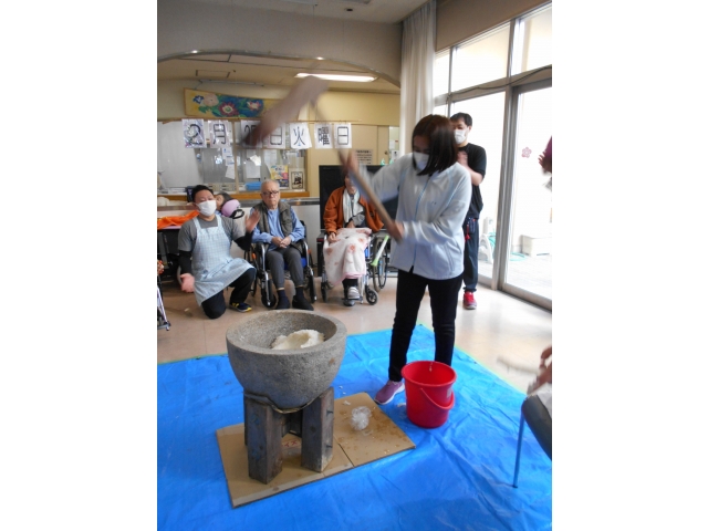 1月に行う予定だった餅つきをようやく行うことができました。