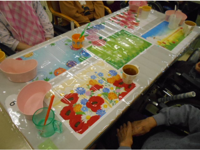 テーブルクロスの下に色とりどりの花などの絵をあしらって、春らしさを演出しています。