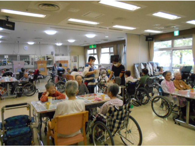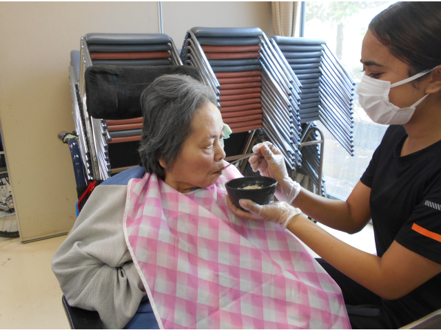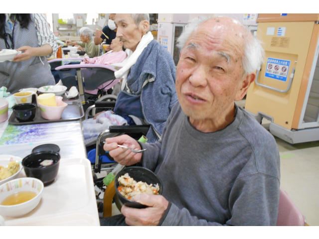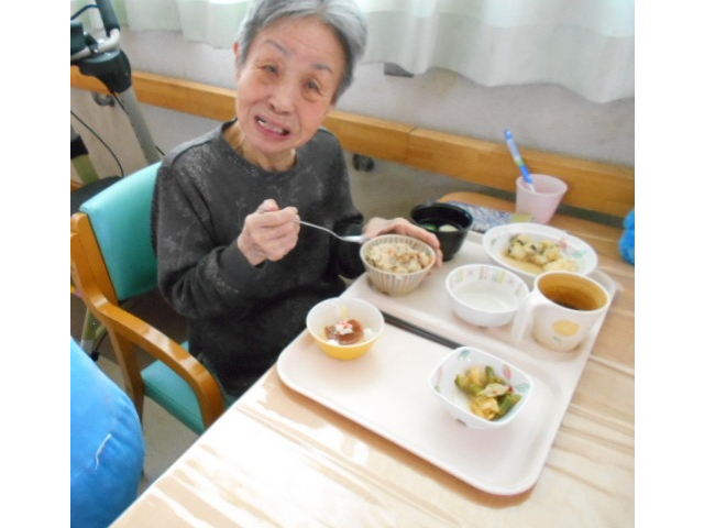 メニューは… 味ごはん、天ぷら盛り合わせ アスパラサラダ、すまし汁、プリンアラモード風 デザートを一番に召し上がる方、いろいろ味見してから召し上がる方、それぞれ個性があります。 笑顔がこぼれ、美味しくいただきました。