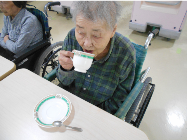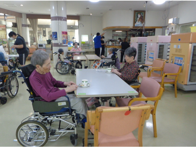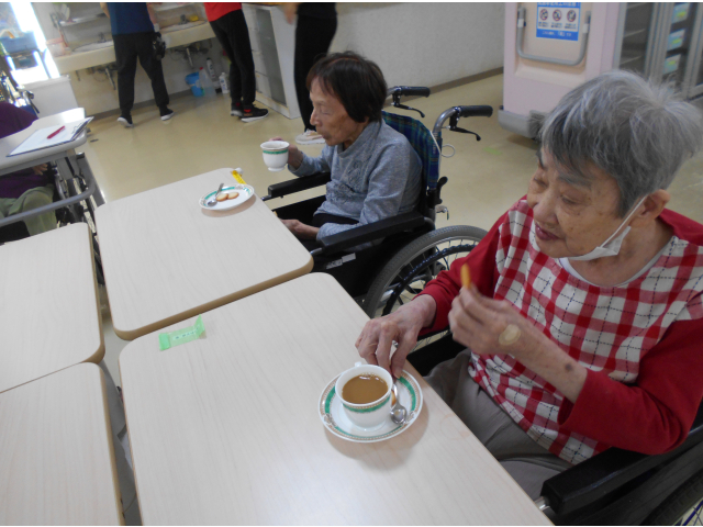 ココアを注文される方が多く、介護員が注文に応じて手際よく用意しました。