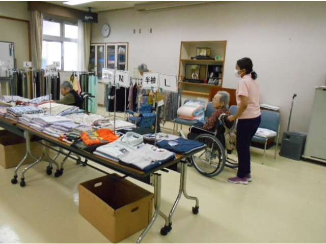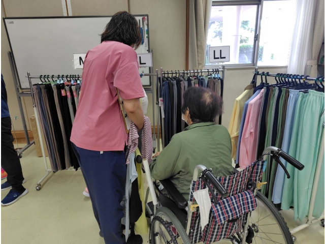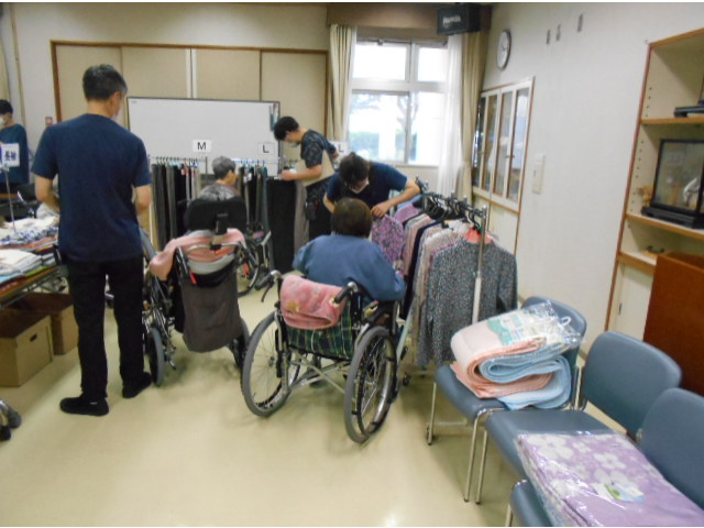 利用者は、楽しそうに思い思いの服を選んでいました。