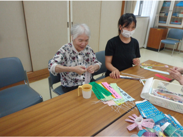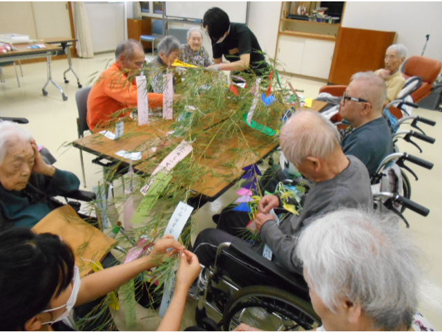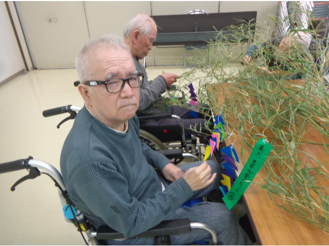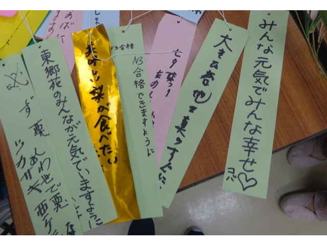 短冊に願い事を書き、笹に飾り付けました。 願い事が叶いますように…。