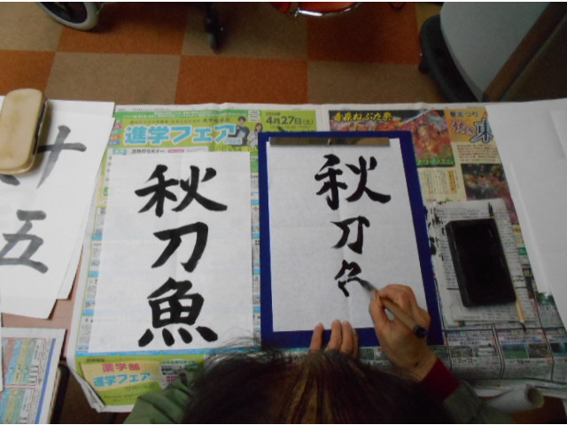 秋と言えば・・・「何かなぁ~」「なんだろう」と言いながら 集中して筆を運んでいました。
