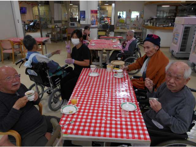 昼食後に手作り南瓜ババロアとコーヒーを提供しました。