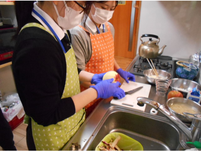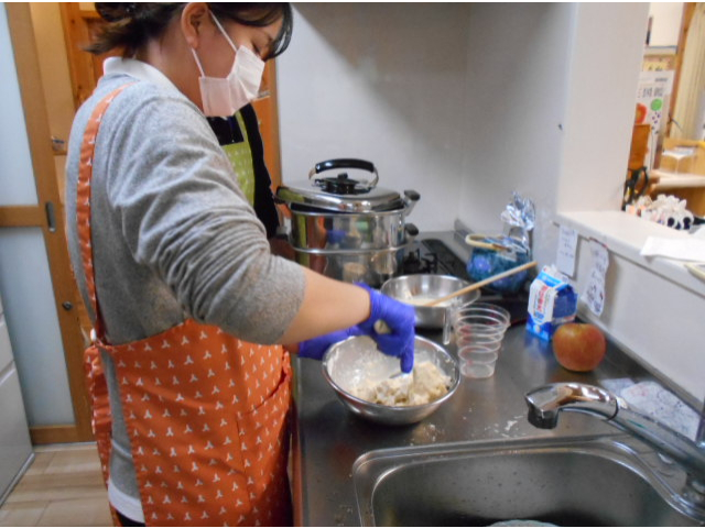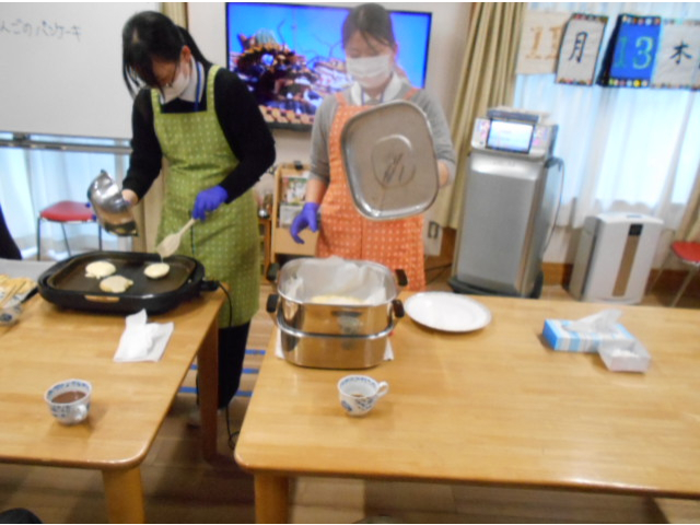 愛知淑徳大学の栄養士実習生がデイサービスでおやつ作りを体験しました。