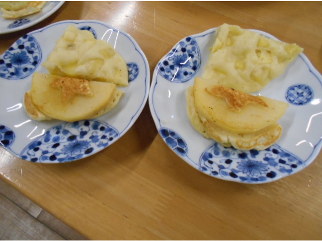 今回は、鬼まんじゅう と りんごのパンケーキ を作りました。