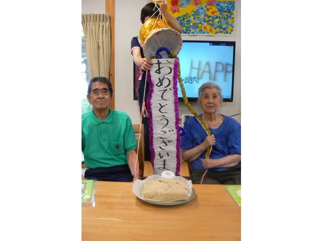 東郷庵では利用されている方の誕生日に近い利用日に合わせて誕生会を開催しています。7月が誕生月の方は4名。それぞれの方に職員お手製の誕生カードとくすだまでお祝しています。誕生カードはその年の干支をモチーフにした切り絵があり、干支を全て集めると素敵な事があるとか……