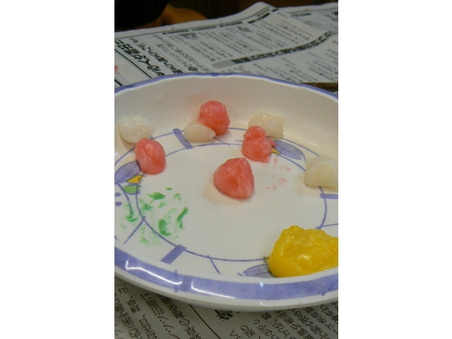 花もちにはいろいろな説があるそうですが、雪深い土地で花のない正月を飾りたいと願い正月飾りとして自然の切り枝に紅白のお餅をつけて飾り、お正月が終わってもそのままにしておいて、ひな祭りのころにお餅を取り外して、そのお餅を油で揚げ、雛あられにしていたそうです。