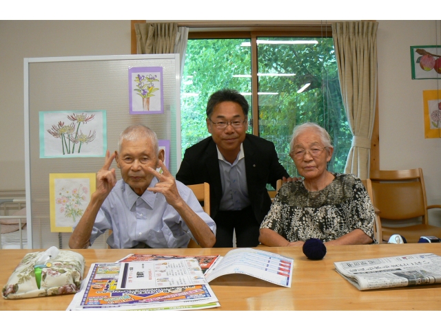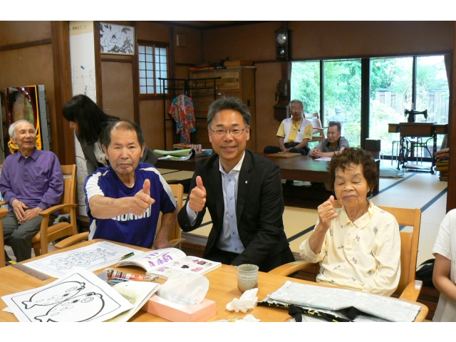 9月13日(金)に東郷町町長の井俣憲治様が東郷庵にお越し下さいました。 特養での敬老訪問を終えてから東郷庵まで足を運んでいただき、利用者様の中には突然の訪問に驚かれる方も見えました。 利用者の皆様との記念撮影も快く応じてくださり、皆さんいい笑顔で写真撮影ができました。