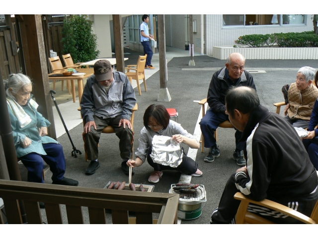 11月の13日(水)と15日(金)に焼き芋会を開催しました。 両日ともに晴れてはいたのですが、15日は気温が低く、利用者様には縁側でお芋が焼きあがるのをお待ちいただきました。 焼き立てのお芋に皆さん笑顔を浮かべ、「熱くておいしいね」や「もう一本食べたいな!!」と2本も食べられる方も見え、とても楽しい会となりました。