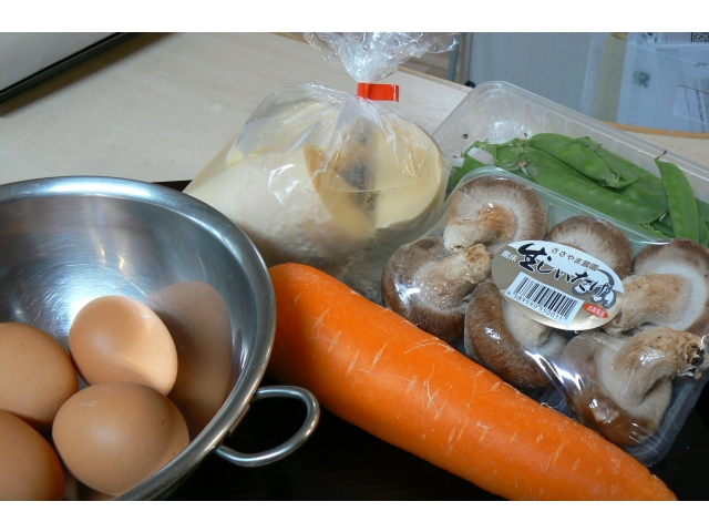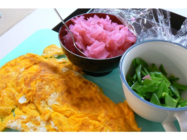 それぞれを皆さんに切っていただき、薄焼き卵も作ります。