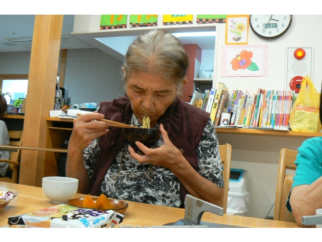 8月25日は「即席ラーメン記念日」☆世界初のインスタントラーメンのチキンラーメンが日清食品から発売されたことが由来だそうです。この日にちなんで、東郷庵では利用者様とおやつに即席ラーメンを作りました♪