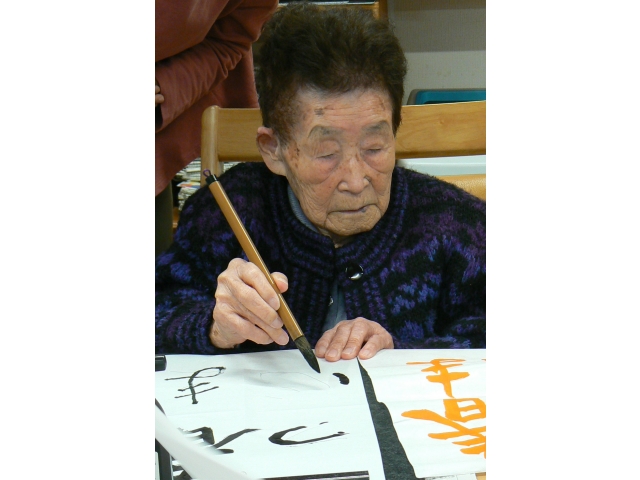 レクでは書初めやかるた取り、こまなど懐かしい活動を行いました。