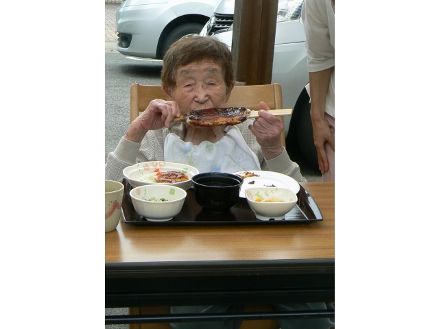 外にテーブルを並べて焼きたての五平餅を頂きます!おかわりをされる利用者様もみえました♪