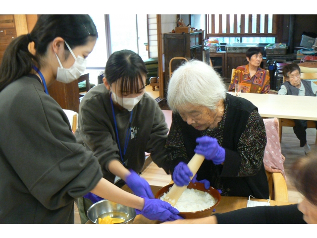 11月の調理レクは栄養士実習にみえていた愛知淑徳大学の学生さんと五平餅つくりを行いました♪