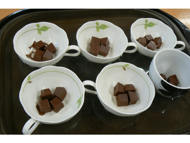 チョコレートを湯煎で溶かすと甘い香りがフロアに漂います☺