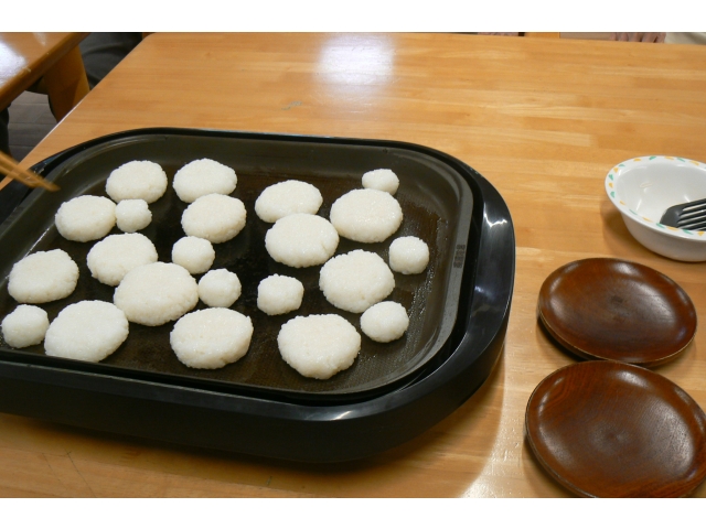 - ごはんを潰して