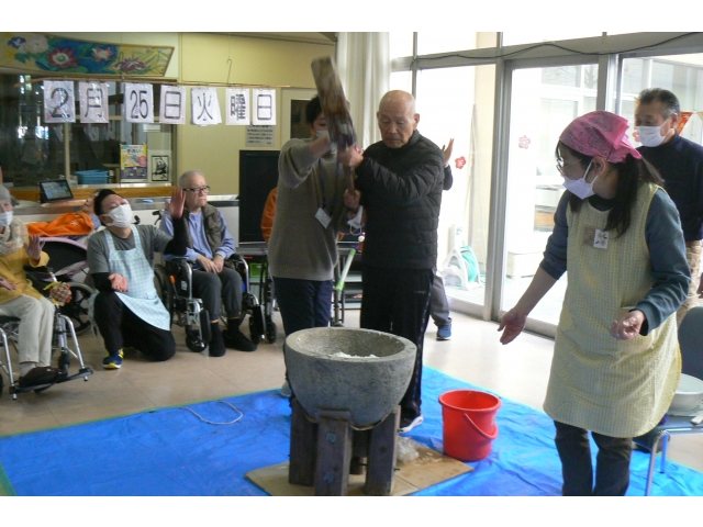 2月25日に東郷苑で餅つき大会がおこなわれました。