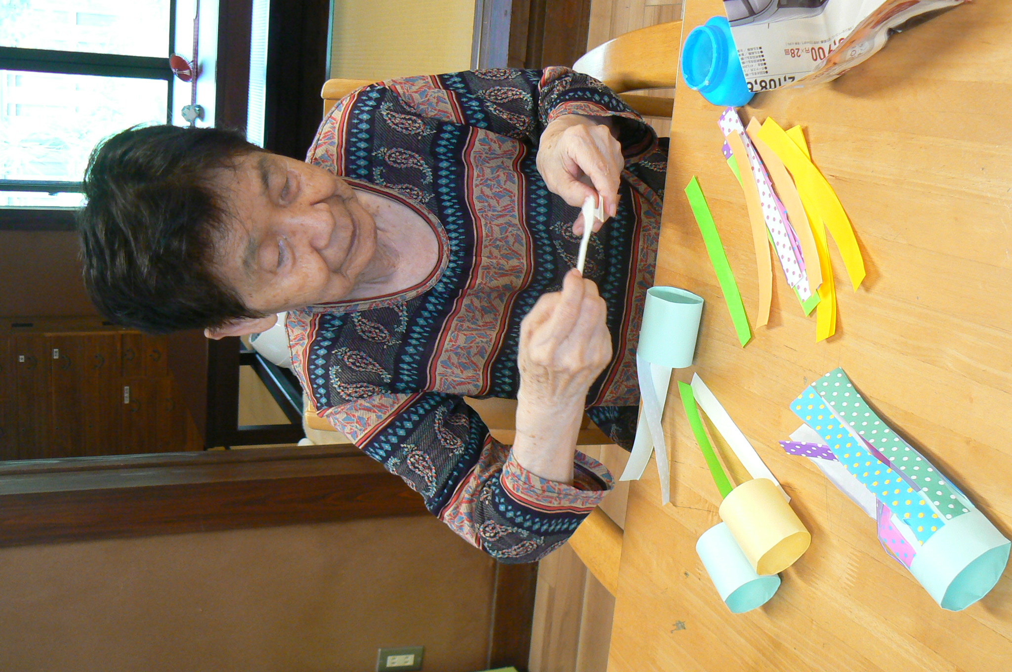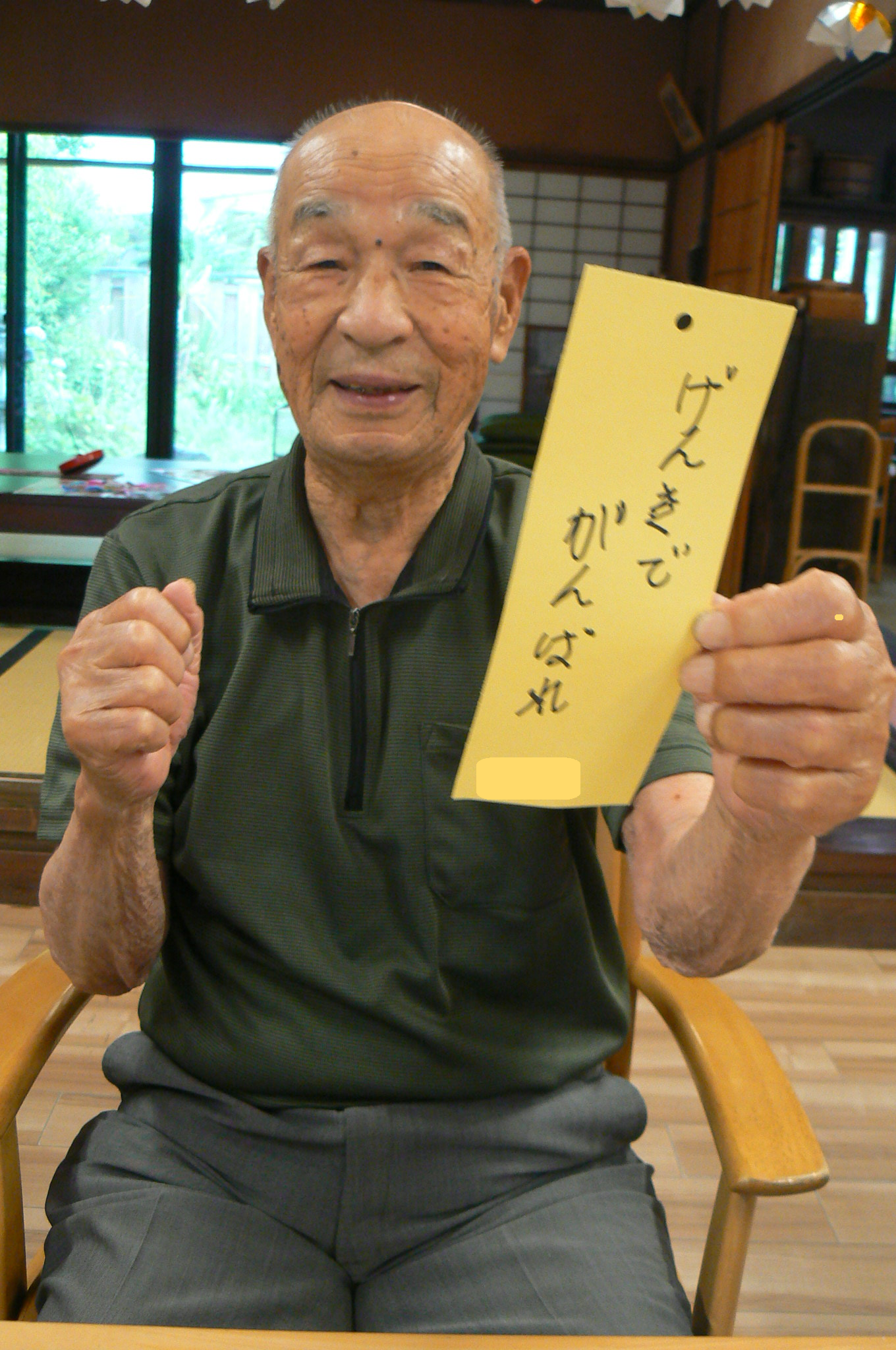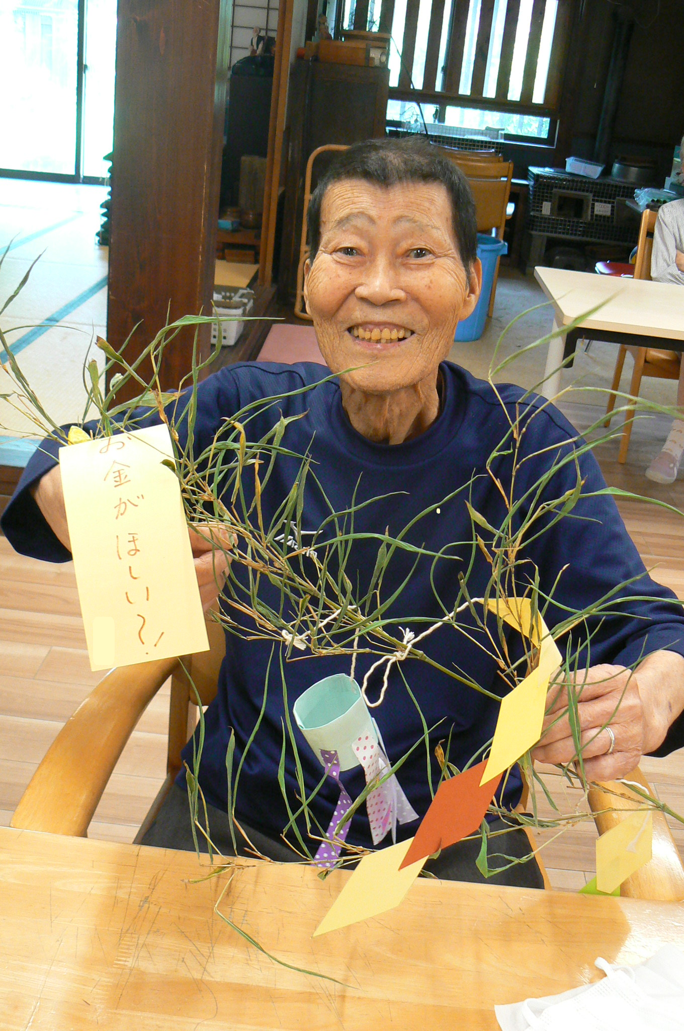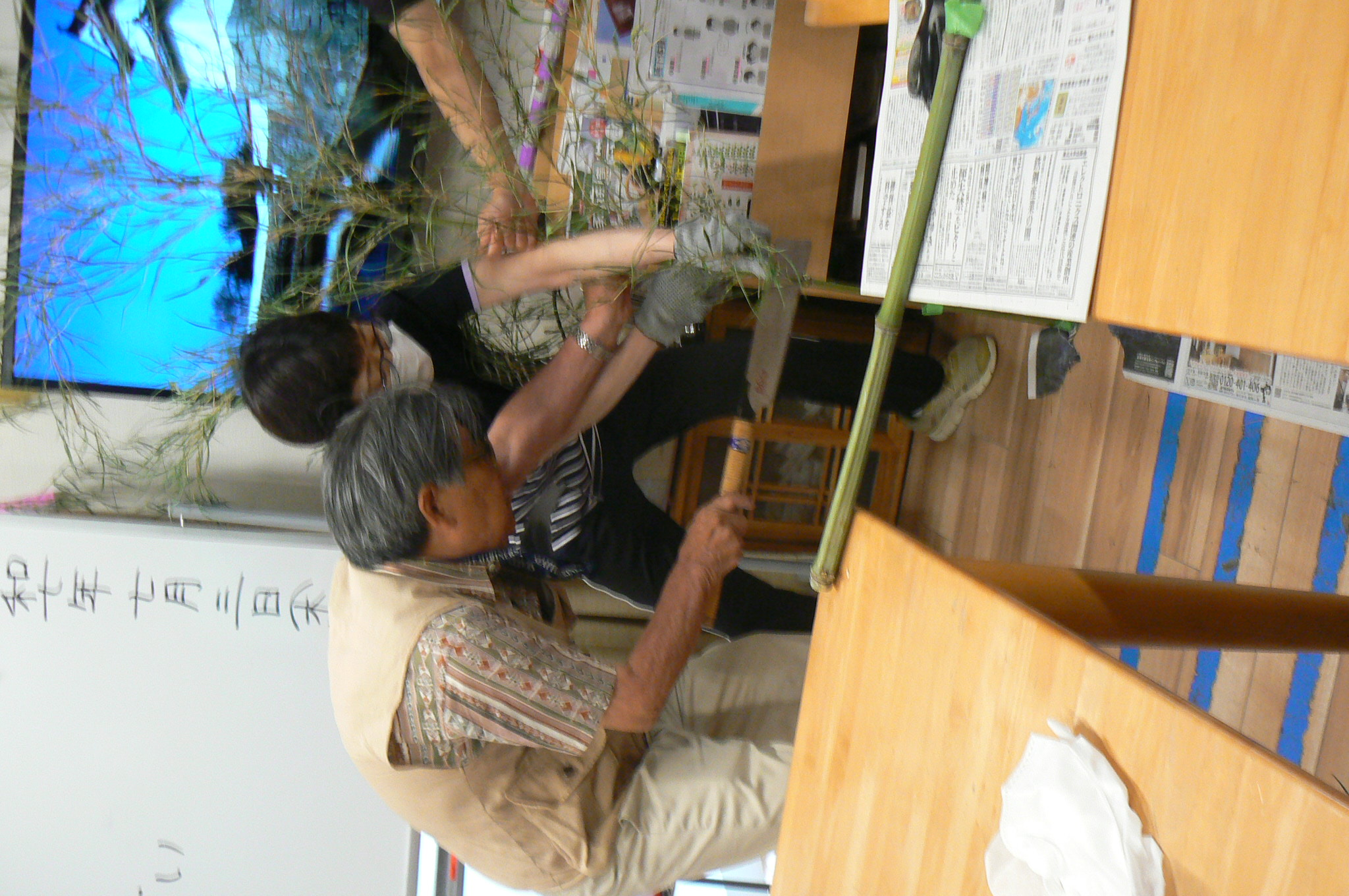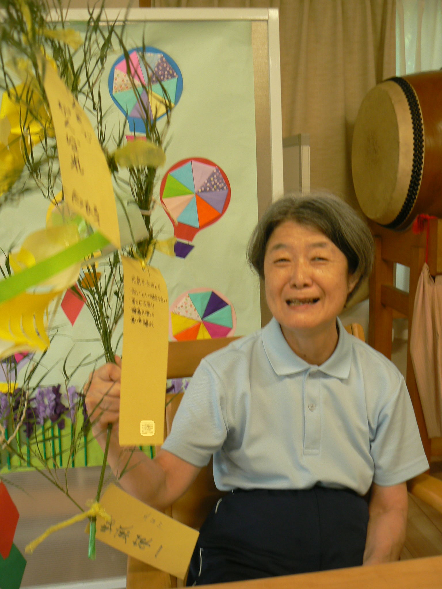 『7月』といえば七夕です。東郷庵では、毎年笹飾りを作ります。笹は、ちょうどいい長さにのこぎりで切り使用します。そのあと、短冊に様々なお願い事を書いていただいて笹に結んでいただきました♪