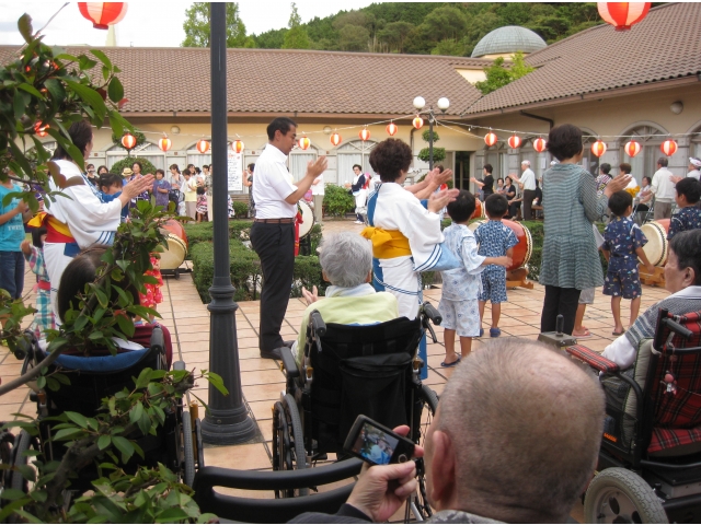 8月3日ゆうあいの里内の施設、養護老人ホーム平尾荘の盆踊りにお招きいただきました。