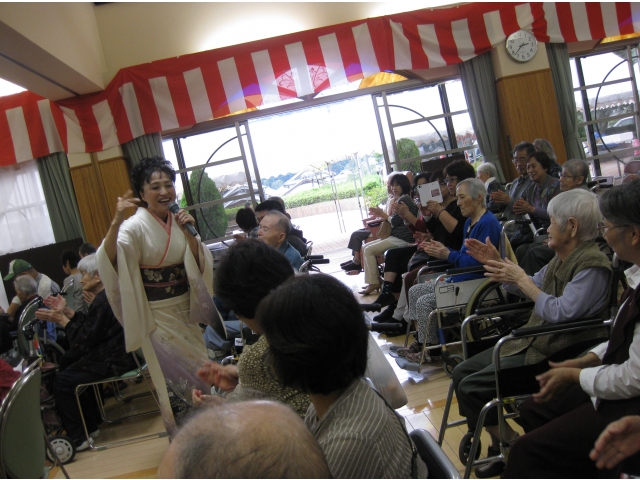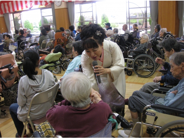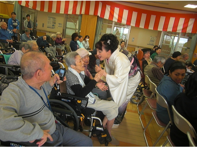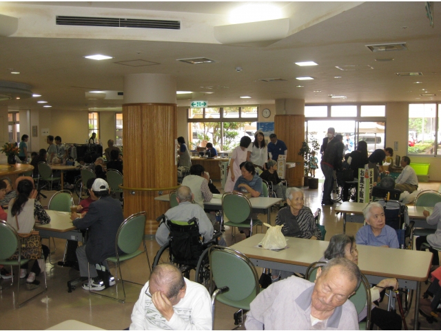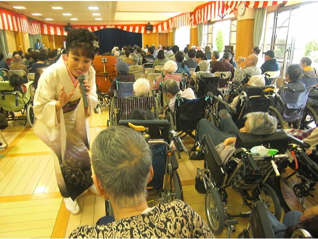 菓子販売コーナー、衣類販売コーナー、福祉用具展示販売コーナー、愛厚希全の里喫茶コーナー、愛厚弥冨の里園芸品コーナー、パン販売、ゲームコーナー、寝具販売コーナー、無料模擬店コーナー(うどん、カレーライス、ぜんざい、フライドポテト、綿菓子、ポップコーン、ジュース)を設営し、大盛況でした!ラストは毎年恒例の梓夕子さん(高浜市出身)の歌謡ショーにて締めくくりました♪