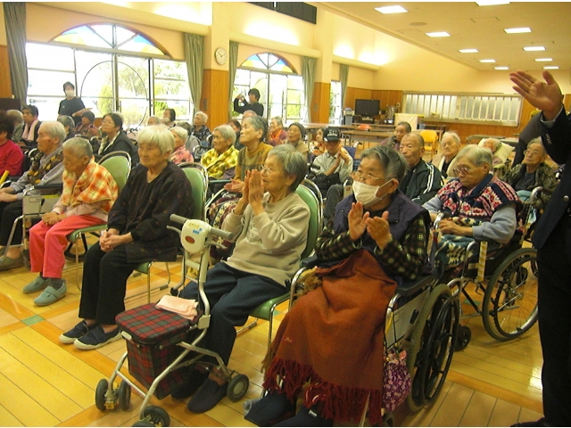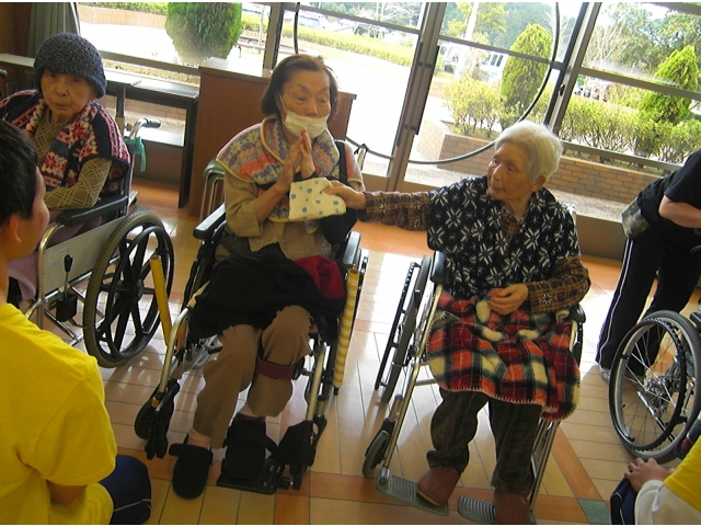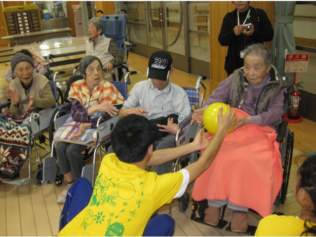同じ平尾町地内にある豊川特別支援学校の2年生の生徒さん達がお越しになり、交流会が開催されました。ダンス発表とハンドベルの披露、物渡しゲームなどのレクリエーションがあり、とても楽しい交流会となりました。