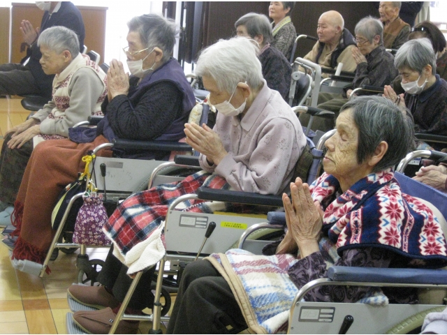 春の彼岸法要を行いました。ご住職の声で、故人のお名前を聞くと、さまざまな思い出が思い出されます。いつもは自分からお話しされたり動くことが少ない利用者様も、手を合わせて仏壇を見つめておられました。一人一人にさまざまな想いが巡っていたように思います。昼食はおはぎでした(写真がないのが残念!)。お参りの後は、甘いおはぎに舌鼓の春の一日でした。