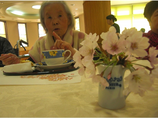 春らしく、桜を活けて、眼にも楽しい喫茶となりました。