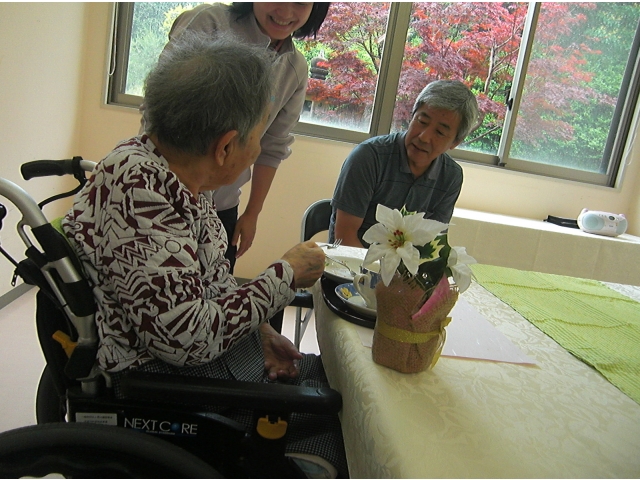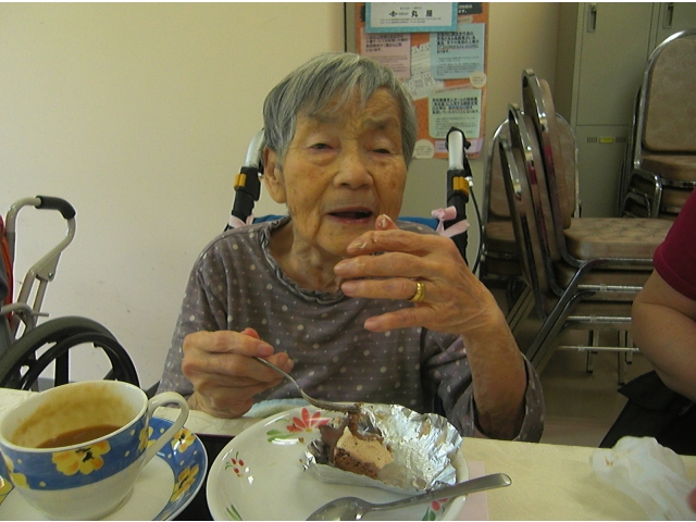 ケーキが目の前にあると、皆さんも笑顔に。いつもはゆっくり召し上がる方も、ぺろっと召し上がりました!中には、「もうないの?」とお皿を見つめる方も・・・。