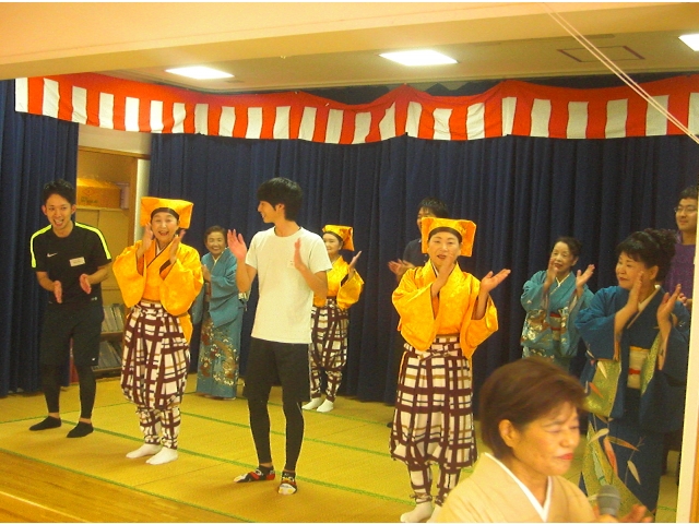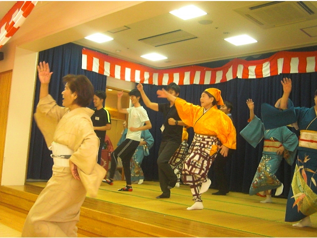 そして職員(たまたま現場実習にきていた研修生さんも・・)も交えて盆踊り。