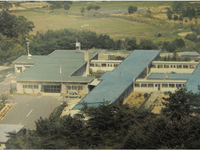 こちらの写真は御油寮のころの正面玄関と、上からの遠景。