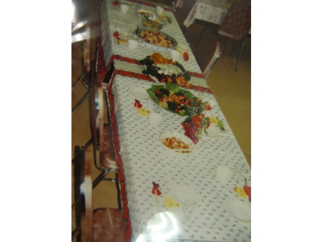 右の写真は行事のときの写真ですが、敷いているテーブルクロスは今でも現役です。