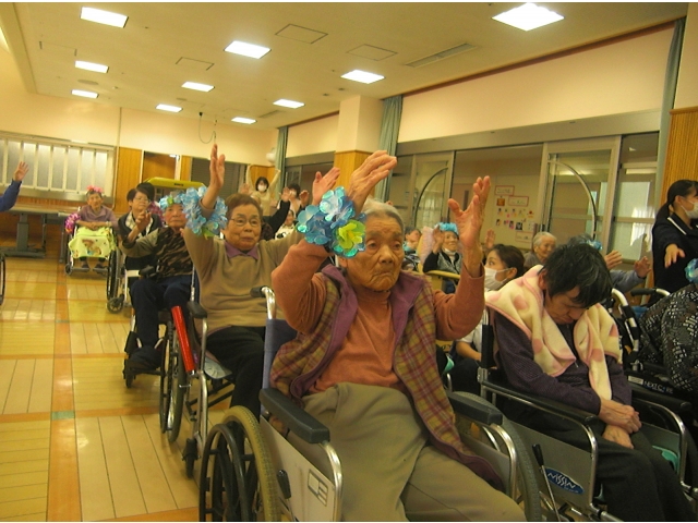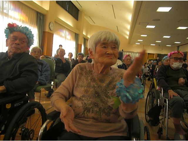 いつもの体操のときは、なかなか腕を挙げない皆さんも、