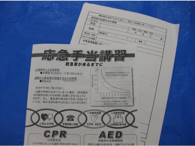 今年は、例年の心肺蘇生法に加え、119番を行った際、どんな情報がほしいのか、何をつたえたらいいのか、のお話もありました。