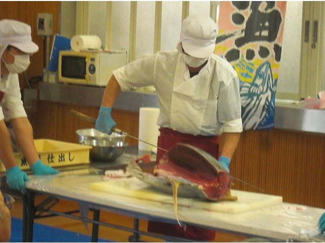 毎年恒例の大人気企画、「まぐろの解体ショー」。