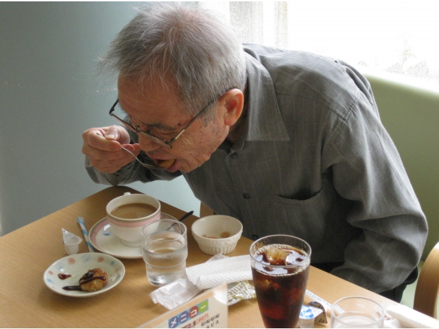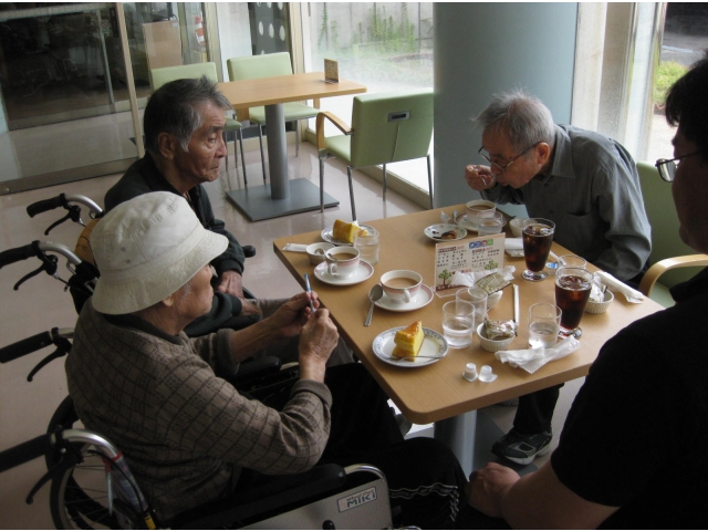 ケーキセットはケーキの他にタコ焼き等を頼む事ができ、ケーキではなくタコ焼きを頼む方もいました。「(タコ焼き)美味しかったよ」「(ケーキ)甘すぎなくて良いね」と言う声が聞こえ、とても喜んでいました。