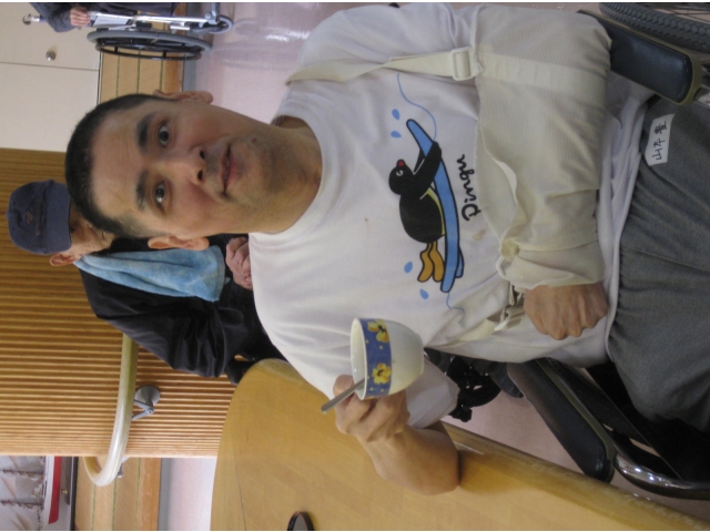 9時30分に「喫茶を始めます。皆様お越し下さい。」と館内放送をします。すると、一階の利用者様がテーブルへ来られ、二階の利用者様もエレベーター前で迎えが来るのを心待ちにしていました。