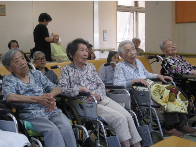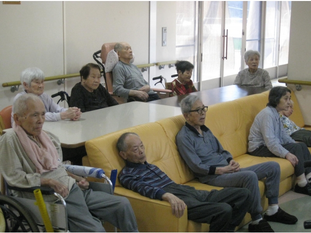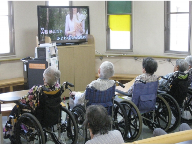 マイクを持って歌う人、一緒になって歌う人、おやつを楽しむ人と、それぞれの過ごし方をしていましたが、皆さんテレビ画面から目を離す事なく見ていました。