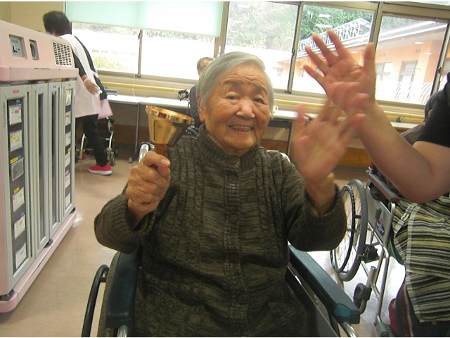 そして、職員によるハンドベルを使ったクリスマスソングの演奏をしました。各階で職員がハンドベルを持ち、綺麗な音色を響かせました。