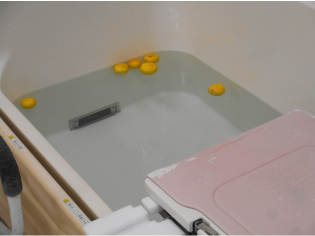 12月21日から23日の3日間のお風呂で、利用者様方に柚子湯に入って頂きました。毎年行っていますが、今年もそれぞれの浴槽に柚子を入れて入浴してもらいました。皆さんが風邪を引かずに冬を越せる事ができますように。