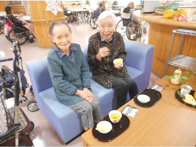 職員の知人から、ティーパックのお茶をたくさん寄付をして頂けました。早速、午後のティータイムの時に、おやつと一緒に提供しました。てん茶入りの緑茶のティーパックで、湯呑み一つずつ淹れ、利用者様からは「いつもと違うお茶で美味しいね」と言って頂けました。