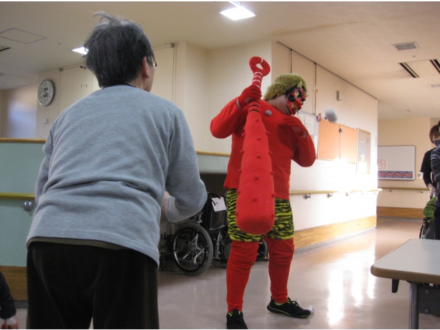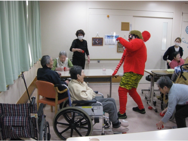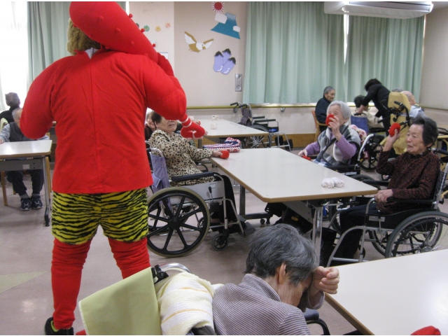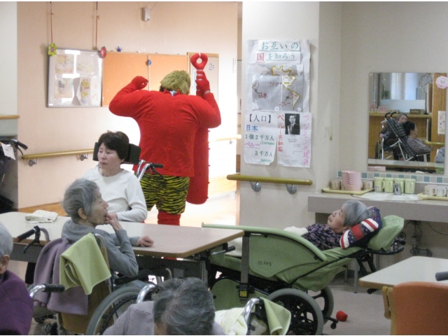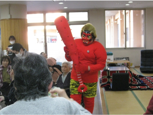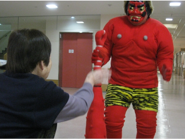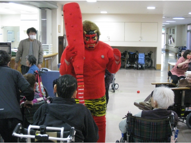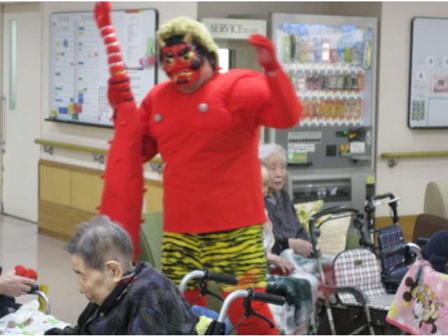 介護員が鬼の恰好をして1階に登場!!