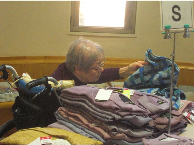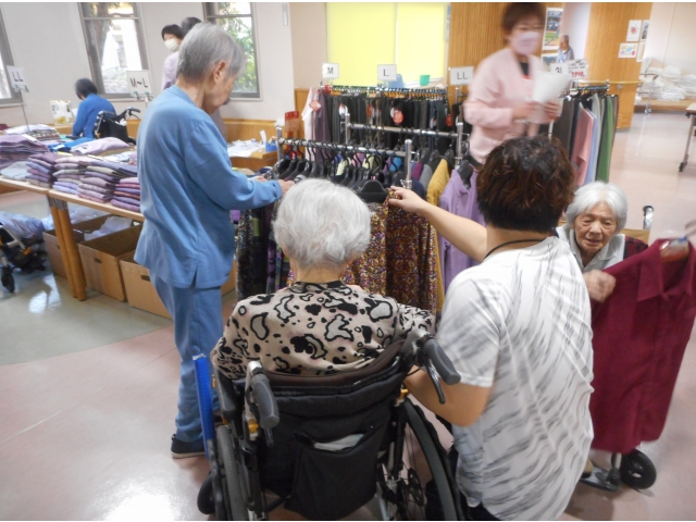 衣類販売ではこれから寒い季節になるので、温かい服を購入したり、利用者様に手を取って選んでもらい、購入のお手伝いを行いました。